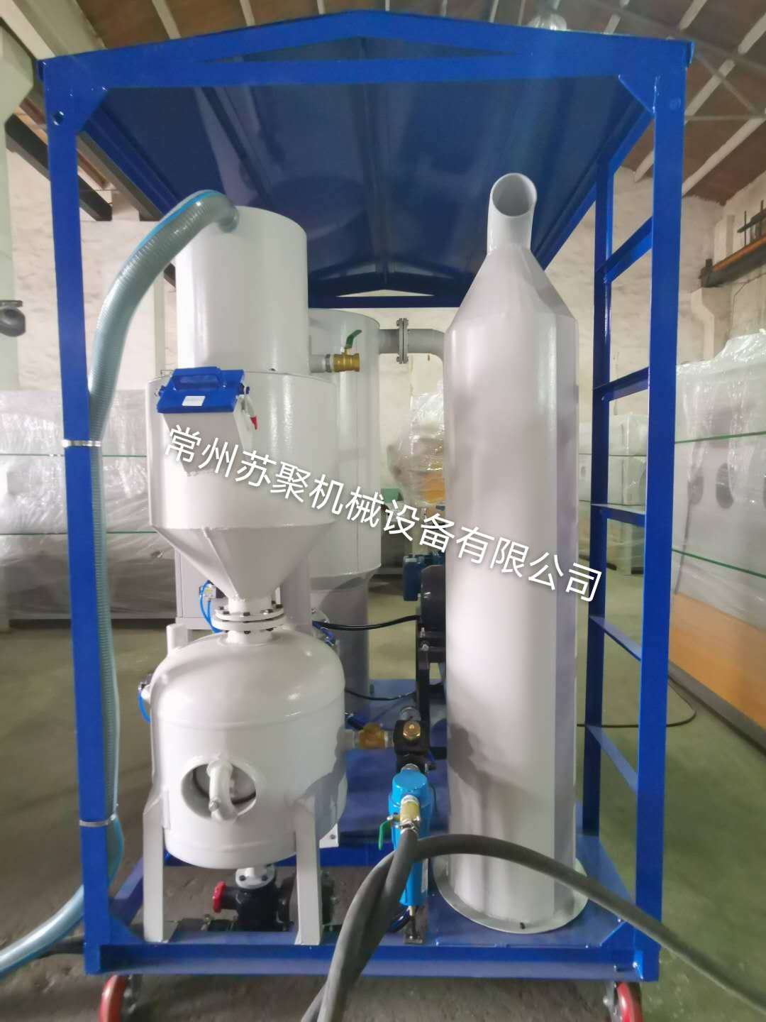 边喷边回收式喷砂机主要由喷砂机主机、移动平台车、脉冲除尘器等组成。