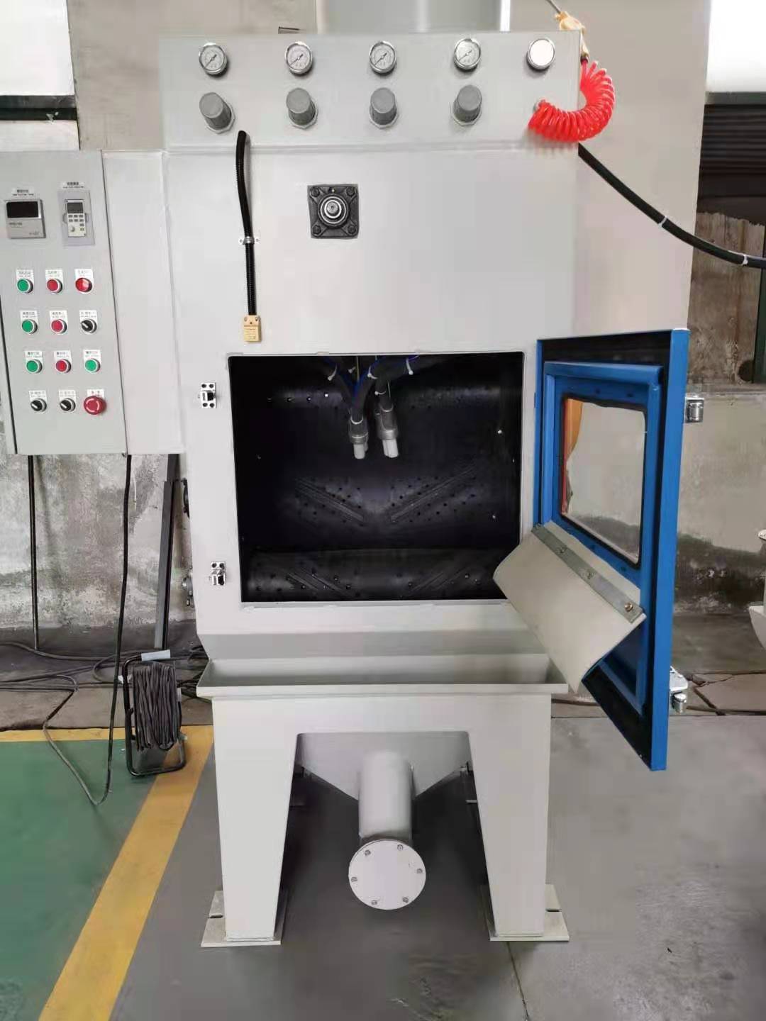 1、 极适合较不怕碰撞小零件之自动喷砂作业,每批可加工大量的工作。